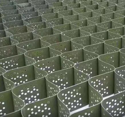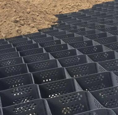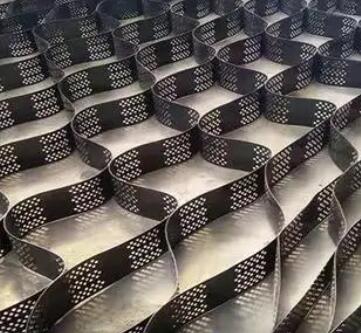 土工格室是由高強(qiáng)度的HDPE或PP共聚料寬帶,經(jīng)過(guò)強(qiáng)力焊接或鉚接而形成的一片網(wǎng)狀格室結(jié)構(gòu)。它伸縮自如,運(yùn)輸時(shí)可縮疊起來(lái),使用時(shí)張開并又充填土石或混凝土料,構(gòu)成具有強(qiáng)大側(cè)向限制和大剛度的結(jié)構(gòu)體。它可用來(lái)做為墊層,處理軟弱地基增大地基的承載能力,也可鋪設(shè)在坡面上構(gòu)成坡面防護(hù)結(jié)構(gòu),還可以用來(lái)建造支擋結(jié)構(gòu)等。